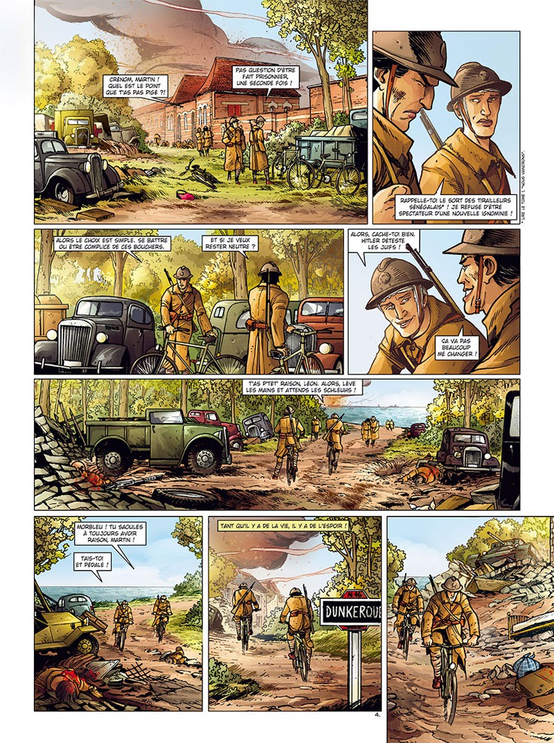 L’auteur est ambitieux et son propos s’aventure dans de nombreuses directions. Il est question des amours et des amitiés du héros, des relations que le futur président français entretient avec Winston Churchill et de la guerre sur le continent noir. Les thèmes se multiplient et de l’ensemble se dégage pourtant une impression de lenteur. Le récit se conclut d’ailleurs sur un fait d’armes significatif d’un point de vue historique (la bataille de Koufra en Libye), mais il est présenté d’une telle façon qu’il se révèle presque banal pour le lecteur. Le bédéphile a la sensation de lire un album de transition alors qu’il s’agit bel et bien de la conclusion du diptyque. En fait, cet opus s’inscrit dans le projet Génération française, lequel est composé de trois fois deux tomes explorant autant de perspectives sur le conflit : l’exil, la résistance et la collaboration.