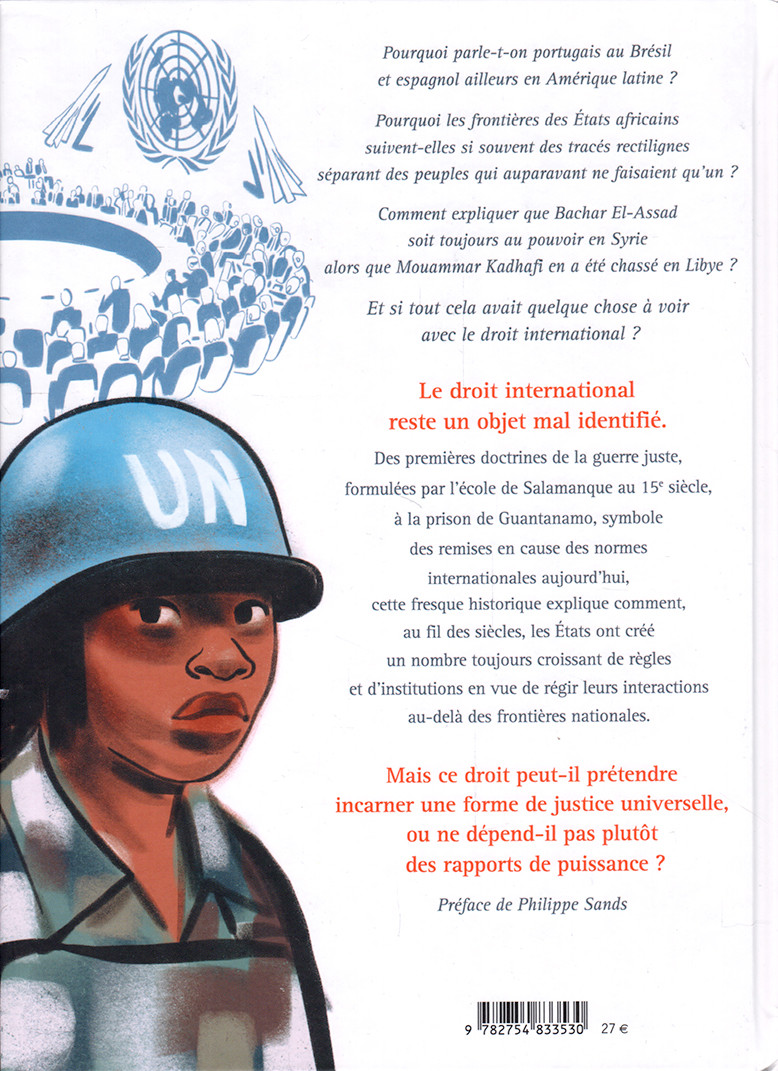 Résumé: Le droit international est aujourd'hui omniprésent. Des règles du commerce international à celles sur la protection des droits fondamentaux ou de l'environnement, il reste pourtant un objet mal identifié. Ce document graphique explique tout! Des premières doctrines de la guerre juste, formulées par l'école de Salamanque au XV? siècle, jusqu'à la prison de Guantanamo ou à la guerre en Ukraine, il montre comment les États ont créé un nombre toujours croissant de règles et d'institutions pour régir leurs interactions.Une lecture critique du droit, tiraillé à toutes les époques entre une dimension morale (le droit comme vecteur de progrès et de civilisation) et une dimension politique (le droit comme instrument du pouvoir entre les États).Pourquoi parle-t-on portugais au Brésil et espagnol en Amérique latine? Pourquoi les frontières des États africains suivent-elles si souvent des tracés rectilignes séparant des peuples qui auparavant ne faisaient qu'un? Comment expliquer que Bachar El-Assad soit toujours au pouvoir en Syrie alors que Mouammar Kadhafi en a été chassé en Libye? Et si tout cela avait quelque chose à voir avec le droit international?Ce document exceptionnel présente le droit international dans une perspective historique, la plus à même de favoriser la compréhension des principes et du fonctionnement de l'ordre juridique international tel qu'il se présente aujourd'hui. Il est difficile, par exemple, de comprendre les débats actuels relatifs à la situation en Syrie sans avoir les idées claires sur la notion de souveraineté - un concept qui s'est trouvé formalisé à partir du XVII? siècle et dont la portée s'est précisée au fil du temps et de la pratique.Une fresque historique, qui s'appuie sur de nombreux exemples concrets à travers les siècles, écrite par deux professeurs de droits international de L'Université Libre de Bruxelles.