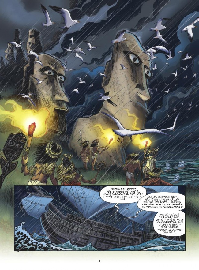Dans ce premier tome, l’équipe d’Ushuaïa part en tournage sur l’Île de Pâques. Malheureusement, le collier sacré du premier roi Hotu Matua a été volé, ce qui attire la malédiction sur l’île. Des ombres inquiétantes rôdent entre les mystérieuses statues…