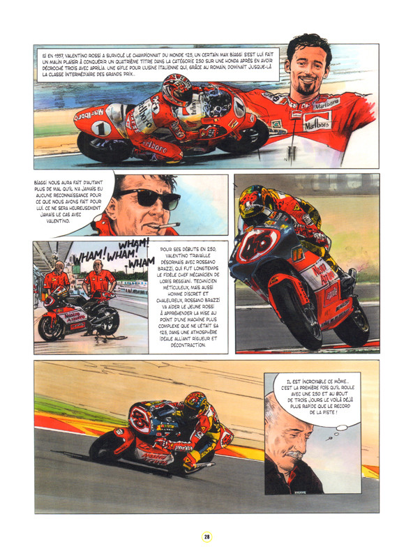 Résumé: Valentino Rossi vient de prendre sa retraite après 26 ans d’une carrière internationale qu’il n’est plus nécessaire de présenter. Et après plusieurs beaux livres et une biographie écrite par Michel Turco, l’auteur qui a suivi de près toute la carrière du Doctor propose pour la première fois une bande dessinée sous les traits de crayon de Renaud Garreta. Le cadeau de Noël parfait !