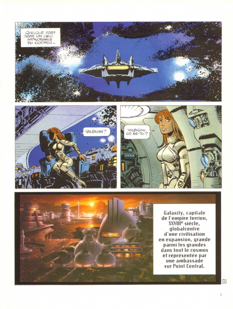 Christin jouerait il la carte nostalgique dans cet album ? Car voici qu’un certain nombre d’anciens personnages refont surfaces. Est-ce sympa pour un lecteur de la 1ère heure tel que votre serviteur ? Oh oui ! Est-ce que cela sert la narration de cette nouvelle aventure ? Si on accepte les hasards et rencontres improbables, oui ça peut servir. Car ce nouvel opus est alerte, plutôt joyeux, débonnaire. Il est aussi sans grand enjeu, ni palpitation. La narration est bonhomme comme une ambiance d’un réunion d’anciens copains. Mais malgré une aventure qui n’est pas aventureuse, il y a tout de même le point de vue de notre société sous-jacente qui m’a beaucoup plu. Christin met en parallèles religion avec pognon, le sacré avec la multinationale. Et j’ai pris un plaisir certain à suivre les pertinences dissimulées de l’auteur au travers d’une kyrielle de personnages tous très bien brossés dans des caricatures fines. J’avoue, j’ai ri beaucoup aux situations entre personnages et j’ai beaucoup souris aussi sur les propos de Christin qui corrèle, avec de nombreux passages sémantiques, les deux thématiques. Le final est un contrat qui unit tout ça de manière bien foutraque mais tellement juste ! Comme toujours, Christin fait tout ceci sans morale acerbe. Il est juste taquin. Ce qui manque d’ailleurs, j’aurais préféré plus de brutalité que de simple sous-entendu. Cela aurait donné de vrais enjeux, alors que, vraiment, la lecture n'est que tranquillou pépère… Sinon Mézières est toujours un génie. Sa plume est à sa maturité la plus absolue. Hélas dans ce chapitre, il ne peut s’exprimer vraiment. Le scénario propose peu de grands espaces, ni de grandes cités (juste des salons, des comptoirs et salle de théâtre…Beaucoup de dialogues (bien écrit certes mais beaucoup quand même) ne permet pas au génie de Mézières à nous en mettre plein la vue..Le 03/07/2022 à 22:23:02