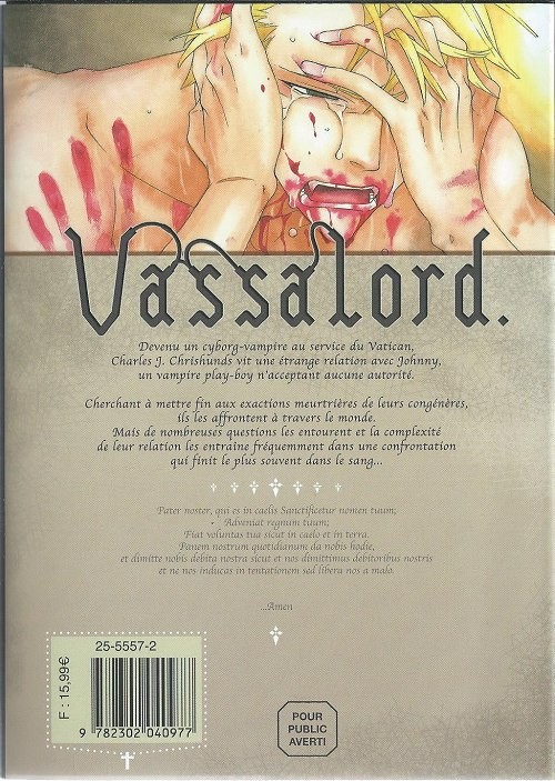 Résumé: Devenu un cyborg-vampire au service du Vatican, Charles J Chrishunds vit une étrange relation avec Johnny, un vampire play-boy n'acceptant aucune autorité. Cherchant à mettre fin aux exactions meurtrières de leurs congénères, ils les affrontent à travers le monde. Mais de nombreuses questions les entourent et la complexité de leur relation les entraîne souvent dans une confrontation qui finit dans le sang.
