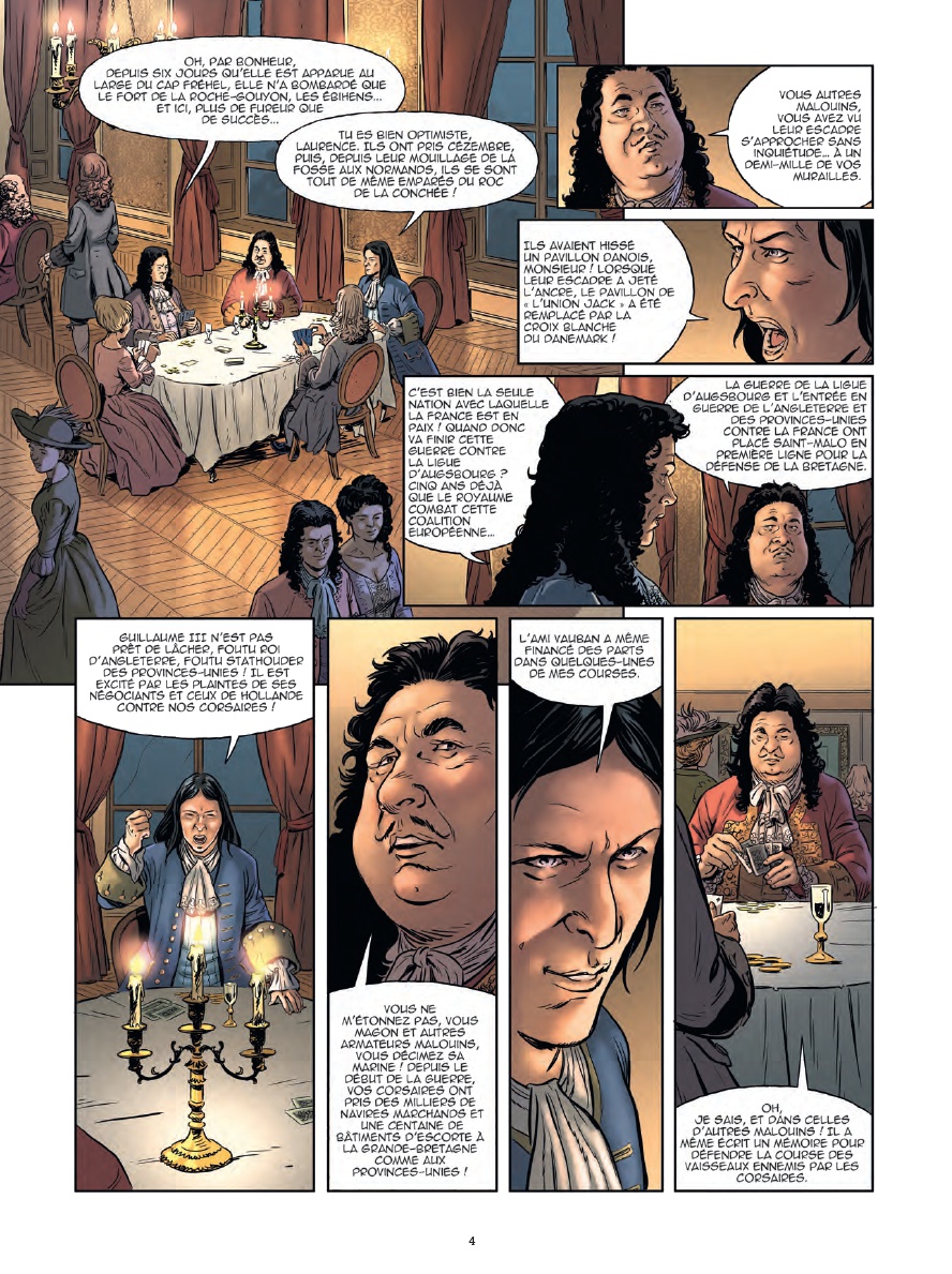 Résumé: À la fin des guerres de religion, beaucoup de protestants ont abjuré leur foi (du moins officiellement) ou émigré. La plupart sont des gens haut placés et instruits que les Britanniques récupèrent pour attaquer les ports et les navires français. Vauban, grand architecte militaire de Louis XIV, est chargé de fortifier et défendre Saint-Malo.