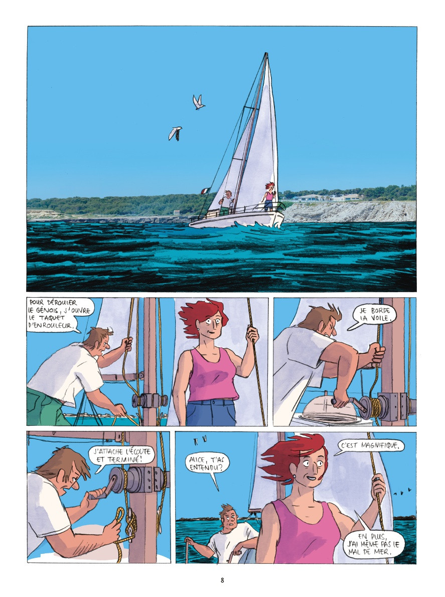 Vent debout est le nom d'un petit bateau dont le propriétaire, amoureux de la mer, parcours le globe avec sa compagne. C'est une ode à la liberté pour échapper à un monde quotidien assez morne. Il est vrai que certains paysages près des côtés sont absolument extraordinaires. Si seulement, il n'existait pas de pirates musulmans ou appartenant à une organisation islamiste pour venir mettre fin de manière totalement violente à ce doux rêve ! Oui, on peut être rattrapé par la dure réalité, en l’occurrence des hommes qui enlèvent des occidentaux en les dépouillant et surtout en réclamant des rançons au gouvernement pour les rendre en vie au lieu de les décapiter. Dans la construction de cette BD, il y a une seconde histoire qui se superpose, celle de ce couple qui part en Indonésie avec ses enfants et qui découvre par le biais d'un vieil homme le premier récit. J'avoue que cette seconde histoire est de trop et peu intéressante. C'est comme un remplissage inutile même s'il y a des moments assez sympathiques. Je préfère le dire honnêtement. Pour autant, on peut prendre plaisir à lire ce récit d'aventure moderne par ces derniers terriens qui veulent se couper du monde pour vivre pleinement leur passion. La nouvelle génération va grandement s'en inspirer, c'est certain. A noter également que les auteurs se sont inspirés d'une histoire vraie à savoir les voyages de Sabine Merz et Jurgen Kantner, navigateurs assassinés par l'Etat islamique en 2017 au large de Sarawak. On ne le répétera jamais assez : ce sont des ennemis de la liberté et de notre mode de vie démocratique. Ils ne doivent jamais passer. En aucun cas ! Nous ne souhaitons, par exemple, pas vivre l'expérience féminine de l'Afghanistan. Au final, c'est une BD qui pousse à la réflexion surtout quand on pratique du tourisme ou passion à savoir la voile à travers le monde. Voyager n'est parfois pas une partie de plaisir !BDGest 2014 - Tous droits réservés