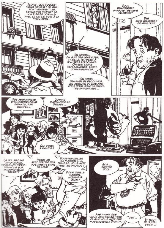 Résumé: TOUT EST NOIR DANS VIDEO NOIRE. Pourquoi l’associé du détective Benedict s’est-il fait massacrer dans son bureau ? Le meurtre a-t-il un lien avec l’enquête qu’il menait sur Miss Dready, la célèbre vedette d’un show pour enfants à la télé ? Et quelle est donc cette bande de gosses terrifiants qui lui conseillent de changer de métier ? Un invraisemblable roman graphique dur, à la narration parfaite et au suspense haletant.