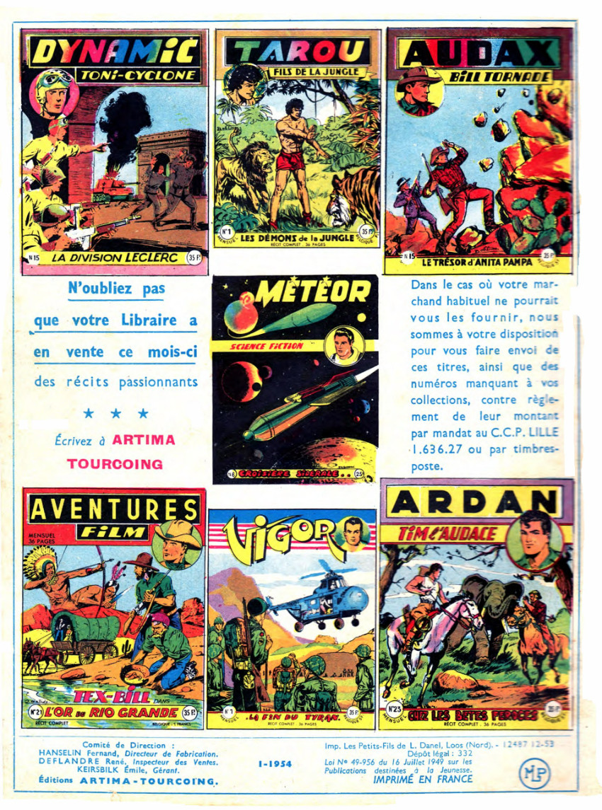 Vigor : La fin du tyran par Robert Giordan et Raoul Giordan (sc et des) (16 pl) - Toupinet : Toupinet voyageur clandestin par Roger Melliès (sc et des) (8 pl) - Le stylo homicide par Rémy Bourlès (sc et des) (8 pl).