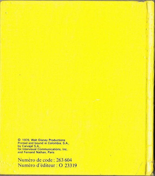 1976 Walt Disney Productions Printed and bound in Colombia, S.A by Carvajal S.A for intervisual communications, inc and Fernand Nathan, Paris N° de code 263 604 N° d'éditeur O 23319