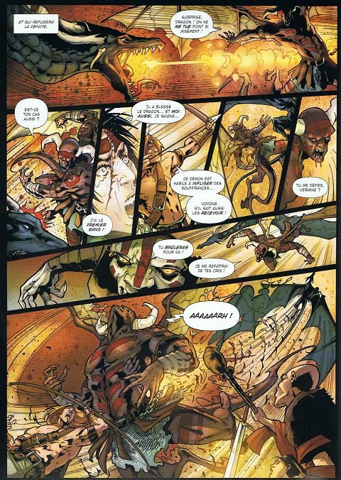 Ceux qui parviendront à passer outre la crédibilité des personnages et le manque d’originalité de cette prophétie au sein d’un décor arthurien, trouveront néanmoins leur compte dans cet album et se laisseront bercer par le côté épique de ce récit mêlant action et magie noire. Se reposant sur son travail dans l’animation, au sein des studios Walt Disney Feature Animation, Philippe Briones livre à cet égard un graphisme dynamique et expressif. Adoptant un style fortement inspiré par les comics, tant au niveau de l’apparence musclée des protagonistes que pour ce qui est du sens du mouvement, le jeune dessinateur enchaîne les scènes de bataille avec beaucoup d’aisance.