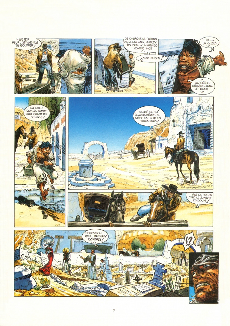 L’histoire est chouette avec de bons rebondissements, des revolvers, des fusils, une armée, des mexicains, un cowboy, un padre, une église, une cantina, bref… un cocktail pour un bon western. Notre brave héros vient au Mexique pour retrouver son meilleur pote (associé) avec qui il doit ouvrir un bar sauf que heureusement pour nous, cela ne va pas se passer comme prévu. J’aime bien l’histoire mais ce que je regrette un peu (et oui il y a un mais), c’est qu’à un certain moment ils s’en sortent un peu trop facilement et aussi il y a une petite scène de violence qui selon moi n’était pas si nécessaire que ça (je chipote). Bonne bédé tout de même. J’adore les dessins ainsi que les couleurs !Le 21/06/2014 à 17:18:57