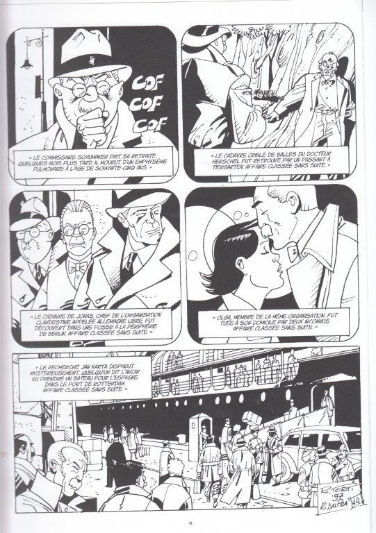 Cela devait être qu'un petit truc publicitaire pour celles et ceux qui achètent la collection entière de Jan Karta chez "Fordis". Sauf que non, c'est carrément bien plus que ça: C'est le pourquoi Karta quitte son Allemagne pour les autres pays européens. C'est le lien qui construit le personnage dans sa personnalité et dans sa rage. Il y a aussi un retour en arrière avec une enquête qui fleure bon les remerciements et la nostalgie. Et c'est âpre (mon dieu que c'est une fois encore âpre), c'est violent et anxiogène et la dernière planche est nihiliste au possible, d'une violence rare. Elle exprime clairement que les happy ends n'existeront pas puisque ce monde tout entier s'approche de l'abime, que quelque soit la justice des combats, la mort est au bout. Le rouleau compresseur nazie est en route. Ce que j'aime par dessus tout c'est surtout le noir et blanc. Je crois sincèrement que cette série aurait mérité d'être construite en noir et blanc. Les dessins de Torti sont faits pour le noir et blanc. Et d'ailleurs, cet opus le prouve. Le dessin de Torti est grand sur ces quelques planches. Bref, dommage que cet épisode ne soit pas en vente libre mais en achat direct chez l'éditeur car, vraiment, pour celles et ceux qui ont Jan Karta dans leurs bibliothèques doivent avoir cet hors série. Il fait sens et il fait partie du meilleur de la série. Et c'est un vrai album de 44 planches superbes. Merci encore à Fordis d'avoir relancé Jan sur une superbe collection.BDGest 2014 - Tous droits réservés