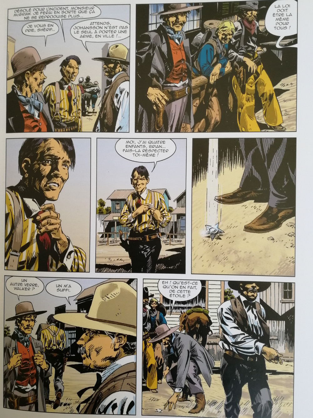 Voici un recueil de plusieurs petites histoires autour de la ville de Springville. Ici, les héros sont des gens ordinaires prêts à affronter le quotidien, leurs défauts, leurs angoisses et leurs peurs. La toute première histoire nous raconte celle d’un Shérif à la retraite dont la qualité première est la bonhomie. Mais celui-ci ne manque pas de courage et il va affronter l’adversité et venir au secours de son ex adjoint devenu Shérif qui se croyait à la hauteur de la fonction et qui ne l’est malheureusement pas. Nous avons aussi une attaque de banque qui se termine très mal. L’ex retraité redevenu Shérif, avec une petite troupe, part sous la pluie à la poursuite des bandits. Mais, ceux-ci sont restés tout proche de la ville. Ils vont obliger le médecin à venir soigner l’un d’eux qui a reçu une balle. Le médecin n’écoute que sa conscience professionnelle pour venir en aide et la situation va le transformer en héros. Mon histoire préférée reste celle des joueurs de cartes. Généralement, nous avons un jeune qui souhaite affronter celui qui tire le plus vite, ici il veut affronter le meilleur joueur de poker. Ce qu’il ne sait pas, c’est qu’il va être opposé à un tricheur. Banal me direz-vous ? Mais, ce tricheur a un très grand cœur… Nous avons encore l’histoire d’un barman qui traîne un passé de pistolero, une autre d’un père qui retrouve son fils et sa mère après être parti à la recherche du courage ou encore celle d’un inconscient guidé par sa bible. Ces petites histoires sont très bien menées et quand un scénario est en béton il est possible d’offrir le meilleur en très peu de pages. Le dessin de Renzo Calegari s’harmonise merveilleusement avec ces petites anecdotes.BDGest 2014 - Tous droits réservés