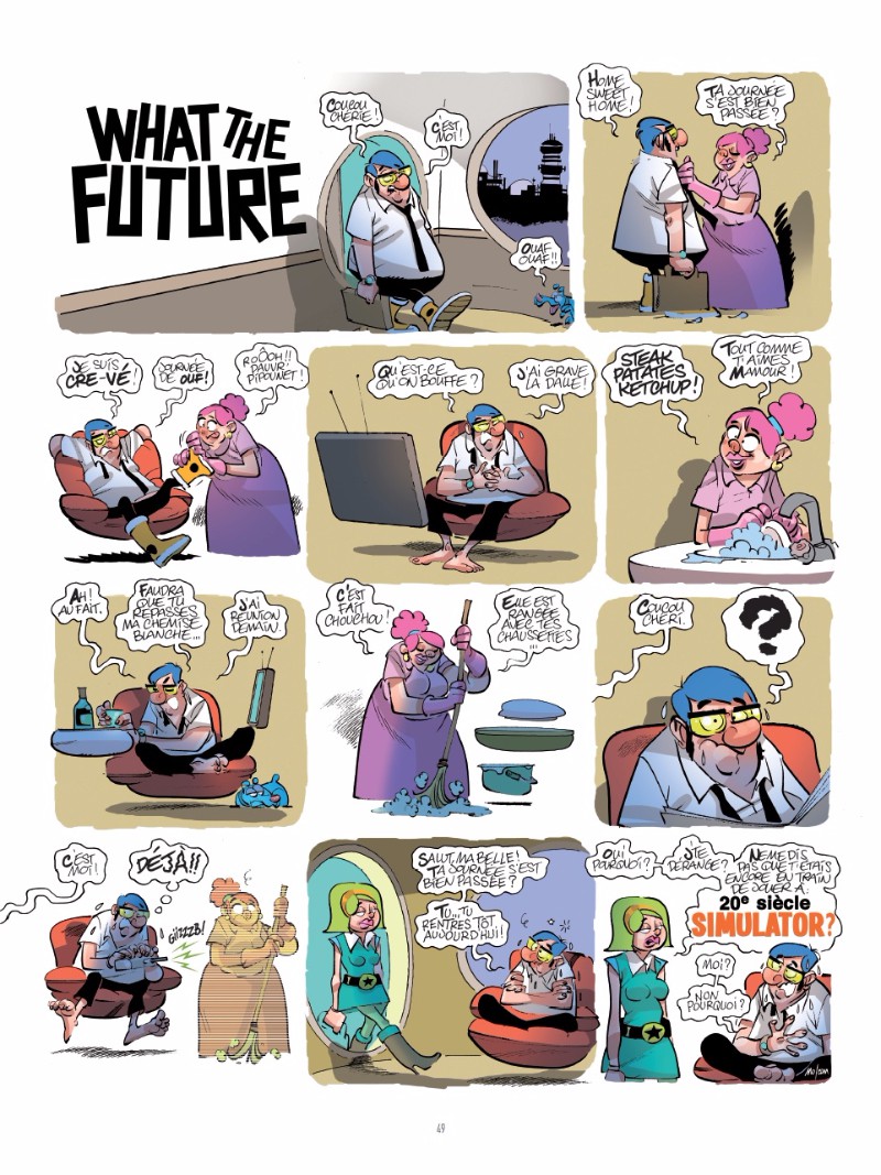 Résumé: Si l'avenir n'est jamais écrit d'avance, il peut en revanche être dessiné. Droïdes domestiques trop humains, incivilités interdimensionnelles, clonages entrée de gamme, fins de vie provisoires... partagez les déboires de la famille FUTUR et découvrez en avant-première quel sera le monde de demain.