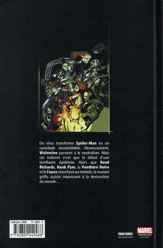 Résumé: Dans Marvel Universe vs Punisher, vous avez découvert un monde en ruines. Assistez aujourd'hui aux sombres et terribles événements à l'origine de ce chaos. Une épidémie se propage peu à peu à la Terre entière et transforme tout les êtres vivants en cannibales. N'écoutant que son courage, Wolverine va alors tenter de sauver l'humanité.