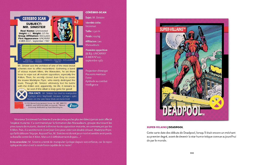 Résumé: Retrouvez pour la toute première fois l’intégralité de ces cartes reproduites dans cet ouvrage. Avec entre autres Wolverine, Tornade, Cyclope, Magnéto et Deadpool. En bonus, vous trouverez des reproductions des planches originales de Jim Lee et les étapes du processus de colorisation des cartes. Le tout est agrémenté par les souvenirs de toute l’équipe de production, recueillis et mis en perspective par celui qui la dirigea à l’époque : le scénariste et superviseur éditorial Bob Budiansky.
