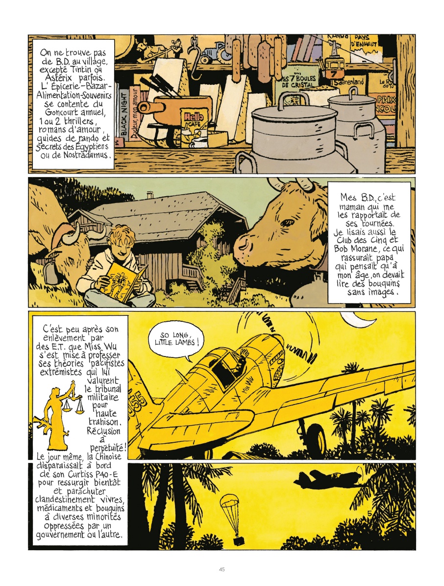 Auteur vétéran auréolé de tous les honneurs, Cosey revient avec Yiyun, un album synthétisant toutes ses préoccupations ou presque : un héros romantique un peu paumé, un ancrage géographique fort (personne ne dessine aussi bien les montagnes enneigés que l’auteur d’À la recherche de Peter Pan), la Chine et les conséquences de ses politiques (qui ne se limitent pas au génocide culturel tibétain). Le tout baigne dans une ambiance imprégnée de philosophie orientale, embaumée des volutes de fondue moitié-moitié, évidemment (le yin et le yang sont partout). Résultat, un petit air de déjà-vu, plusieurs même, accompagne le lecteur au fil des pages.