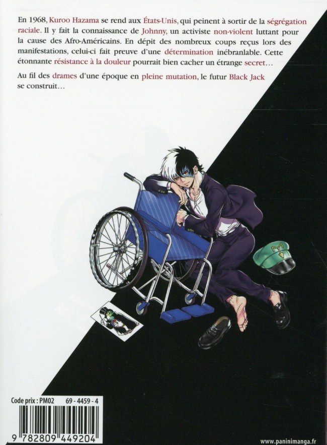 Résumé: En 1968, Kuroo se rend dans une Amérique encore hantée par le spectre de la ségrégation raciale. Il rencontre alors Johnny, un jeune activiste adepte du principe de non-violence de Martin Luther King. Cependant, cette non-violence risque de ne pas correspondre au climat de l'époque, rendant plus que nécessaires les talents médicaux du jeune Black Jack...