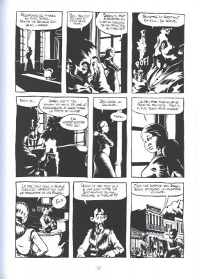 Zapatistas rassemble en un recueil plusieurs épisodes des « aventures sentimentales » des deux amants, qui s’aiment malgré un rapport quelque peu différent à l’hémoglobine. Derrière une couverture qui donne le ton, Pierre Place fait dans la franche déconne mais en met plein la vue. Il est toujours agréable de voir un auteur réaliser avec sérieux un album qui, justement, ne se prend pas au sérieux. Ici, tout part en vrille dès les premières planches, avec des dialogues loufoques et des situations rocambolesques. Cela n’empêche pas le dessin d’être parfaitement exécuté, l’ambiance lourde et la violence omniprésente, le tout accompagné de textes particulièrement bien écrits. Il y a du début à la fin un soin apporté aux détails qui force le respect, d’autant qu’entre humour et description d’un quotidien finalement fort tragique, l’équilibre est plutôt bien trouvé.