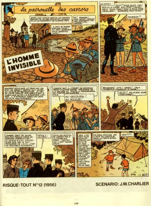 Résumé: Sur la piste de Mowgli : Grâce au milliardaire Mr Brewster, le père de leur ami américain Jimmy rencontré dans la précédente avanture, "L'inconnu de la villa mystère", les Castors prennent le large et rejoignent l'Inde après une longue croisière sur le paquebot Empress of India ! Débute alors une épopée fantastique où ils vont se lier avec un authentique Maharadjah, déjouer les attaques des serpents, de voraces crocodiles et autres tigres farouches ... Mieux encore, les Castors vont sauver un enfant sauvage qui n'est autre que le Prince héritier d'un petit état indien, porté disparu depuis des années. La bouteille à la mer : Lors d'une excursion en mer aux large des côtes basques, la Patrouille des Castors découvre une bouteille flottant sur la mer. Celle-ci contient un message de trois savants qui ont échoués au Groenland. Ils apprennent bien vite que les corps des trois scientifiques ont été retrouvés sur la côte islandaise. Les scouts ont cependant un doute et décident d'enquêter... Le trohée de Rochecombe : La Patrouille des Castors part camper à Rochecombe. Leur route croise rapidement elle de Frédé et sa bande de voyous. Les scouts constatent rapidement qu'ils ne sont pas les bienvenus au village : des messages signé d'une tête de chacal noir les menacent. Ne se laissant pas intimider, les Castors montent leur camp. En creusant un trou, Tapir découvre une statuette de sanglier en bronze, qui est probablement une enseigne gauloise. Leur découverte fait l'objet de convoitise...
