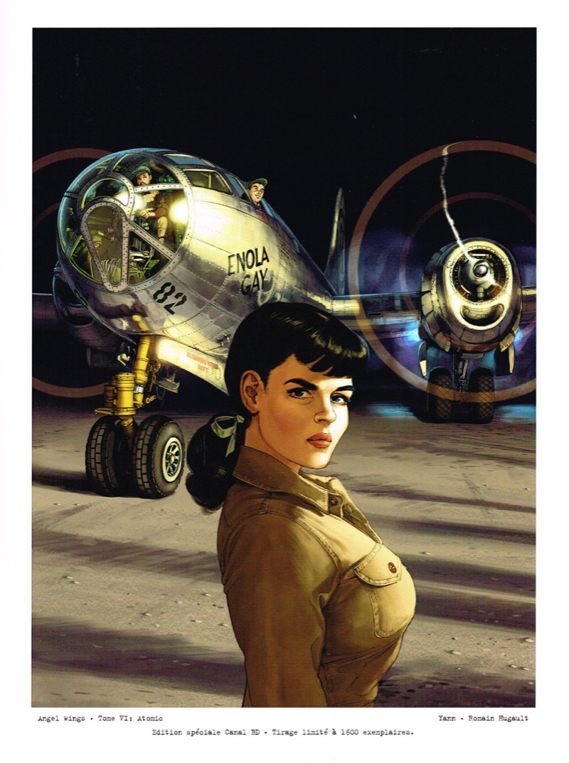 Juin 1935. Surfside Beach (Nord de Miami – USA). Un policier de Miami surprend un couple dans une voiture occupé à… Heu… Faites sortir les enfants, s'il vous plaît… Juin 1944. Raleigh Hotel (Miami South Beach). Le policier raconte les faits de 1935 à deux individus qui prétendent enquêter pour un journal. Il leur remet le dossier où il a consigné les faits constatés en 1935. La fille était mineure et l'individu qui la… Heu… Tous les enfants sont sortis ? … Bref, l'individu en question a échappé à toute sanction, vu que ses parents connaissaient un juge qui a étouffé l'affaire. Quel rapport avec la quête d'Angela ? (Le sage a dit : « Tant que tu n'as pas franchi la ligne d'arrivée, tu ne saurais connaître la vérité sur les ampoules aux pieds ! ») Pendant ce temps, Angela arrive à l'île de Tinian dans les Mariannes où elle espère rencontrer Dora Dougherty qui a volé sur B-29 avec sa soeur. Angela a plus que jamais envie de découvrir pourquoi sa soeur a été assassinée car elle refuse de croire la thèse de l'accident… Critique : Snif ! Voici la fin des aventures d'Angela. Surtout ! Surtout ! Ne ratez pas la dernière planche, l'épilogue, si vous souhaitez connaître la vérité puisque, pour rappel, Angela veut connaître la vérité quant à la mort de sa soeur intervenue sous ses yeux. Cet album-ci tourne donc essentiellement autour de la quête de notre WASP préférée. L'espionnage est au centre de cette aventure. Les combats aériens et autres aventures militaires sont, bien sûr, présents, ainsi que la préparation du premier bombardement atomique de l'histoire de l'humanité. Le scénario n'étant pas linéaire, il peut paraître confus et nécessitera plusieurs lectures de l'album pour saisir une multitude de petits détails qui apportent un magnifique éclairage sur cette histoire. Ne jugez pas trop vite Dora ! Dora qui ? Lisez ! Yann s'est amusé à brouiller les pistes. Il faut se rappeler les épisodes précédents d'ANGELA WINGS pour savourer pleinement l'histoire concoctée par le scénariste. Des scènes qui paraissent sans lien avec le récit en ont pourtant bien un. Bien sûr, il y a des histoires dans l'histoire qui ne sont pas nécessairement en lien avec la quête d'Angela, mais qui expliquent à quel point il était dangereux de faire partie d'un équipage d'avion dans le Pacifique (ailleurs aussi, d'ailleurs). Les pertes étaient colossales. Sans oublier qu'une bonne partie de l'histoire se déroule sur l'île de Tinian, la plus grande base aérienne au monde à l'époque puisque c'était de là que partaient des centaines de B-29 pour aller bombarder le Japon. La documentation consultée par les auteurs a dû être d'une quantité ahurissante. Hugault en a tiré le meilleur. Une fois de plus ses dessins sont d'une précision et d'une beauté à se faire dresser les trois poils qui restent sur le crâne d'un chauve.Le 25/03/2020 à 12:13:32