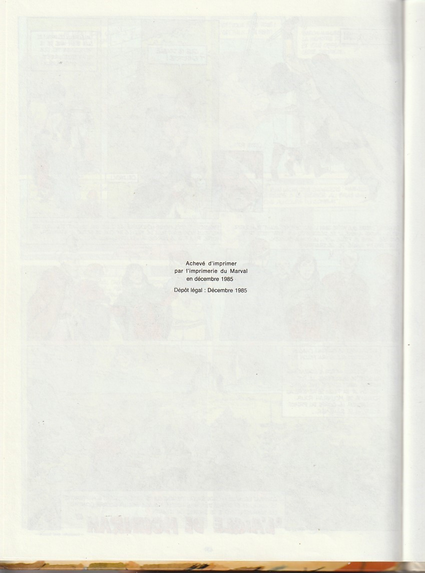 Info édition : autre ISBN au 4e plat : 2-7234-0381-5. incription page 48 du dépôt légal et de l'impression par l'imprimerie du Marval. aucune différence notable de visuel mais à différencier de l'EO !