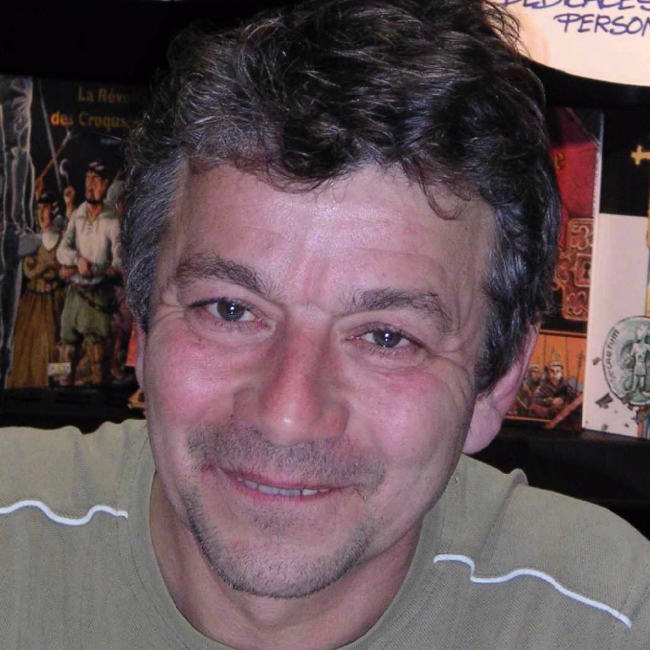 Bigotto, PhilippePhoto © Philippe Descroix Après son CAPES d’arts plastiques obtenu en 1983, Philippe Bigotto devient enseignant d’arts plastiques au collège La Boétie à Sarlat. Passionné de bande dessinée, il décide d’organiser un atelier BD dans son collège en partenariat avec la Direction Régionale des Affaires Culturelles, tout en produisant des bandes dessinées en compagnie de son compère scénariste Thierry Félix.... Lire la suite
