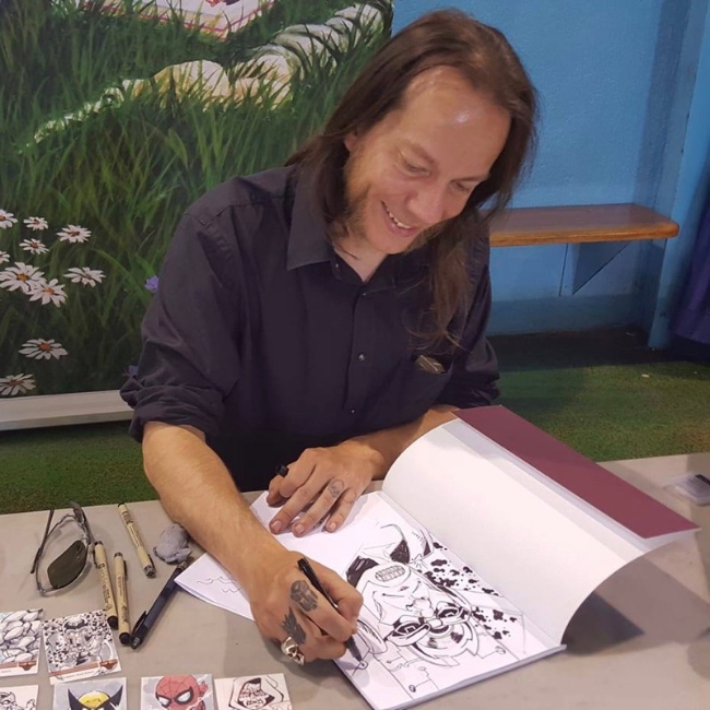 Axl, DidierDidier Axl est un dessinateur, illustrateur fondamentalement geek dans l'âme et fan de comics américains. Un passionné qui n'hésite à partager sa passion avec les plus jeunes. Travaillant entre autres pour les éditions Néofélis, cet illustrateur qui baigne dans l'univers des comics américain, démontre toutes ses qualités dans sa dernière contribution sur le Fanzine « Comics Signature n°1 » et sur... Lire la suite
