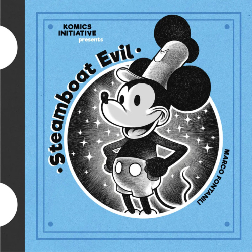 Album en noir et blanc au trait névrotique, voire halluciné, cette version diabolique de ce récit tout simple se montre à la hauteur de l’original. Le dessinateur se refait le film en lui injectant une bonne dose de soufre. En tête de distribution, un Pat Hibulaire cornu et aux pieds de bouc s’en prend à un Mickey pas moins décalé. La bagarre dantesque qui découle de cette rencontre va d’ailleurs démontrer que ce dernier n’est pas non plus un ange, bien au contraire. Le connaisseur notera que Fontanili n’a exploité que le début du dessin animé original et s’est limité au duel entre les deux protagonistes. Minnie et les animaux de la ferme ne sont donc pas du programme. La fin est également totalement originale, mais chut, laissons la surprise aux petits et grands lecteurs.