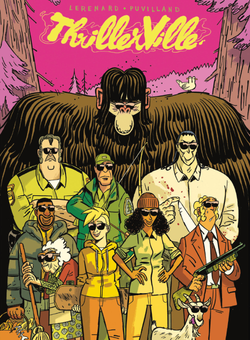 Récit choral à la limite des genres, Thrillerville est le premier scénario de Lerenard. Quelque part entre les frères Cohen et Guillaume Griffon, il anime une distribution haute en couleurs dans une sorte de course à l’échalote multicéphale particulièrement truculente. Des flics de campagne bourrus aux jeunes femmes dynamiques, en passant par l’épicière hors d’âge, sans oublier une ou deux créatures légendaires et, évidemment, quelques secrets passés et présents qui ressurgissent, les stéréotypes ne manquent pas. Heureusement, le néo-scénariste ne s’est pas limité aux apparences et au pastiche. Intercalés dans la trame principale, des retours en arrière très bien construits apportent précision et contexte aux différentes force en présence. Ces petites touches enrichissent la psychologie des personnages et amènent de nouvelles pistes ou significations aux événements. L’ensemble est emballé par un humour omniprésent et essaimé de références et clins d’œil «pop-culturesques» savoureux. Il en résulte un album tonique, un peu longuet peut-être, mais toujours fluide et bourré d’une énergie contagieuse.