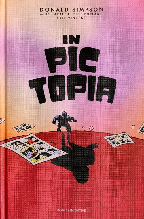 In Pictopia, fable dessinée par Donald Simpson, Mike Kazaleh, Pete Poplaski et Eric Vincent sur un scénario original d’un des grands noms des comics fut publiée en 1986 dans un recueil collectif caritatif au bénéfice de Gary Groth et du Comics Journal, alors empêtrés dans une affaire de diffamation. Il s’agit d’un petit récit satirique et passablement désespéré à propos de l’industrie du comics. Percutantes et impitoyables, ces quatorze pages avaient été remarquées par toute la profession. Groth finit par gagner son procès, put payer ses avocats et Fantagraphics continua sa mission d’éditeur exigeant. Fin de la première partie de l’histoire.