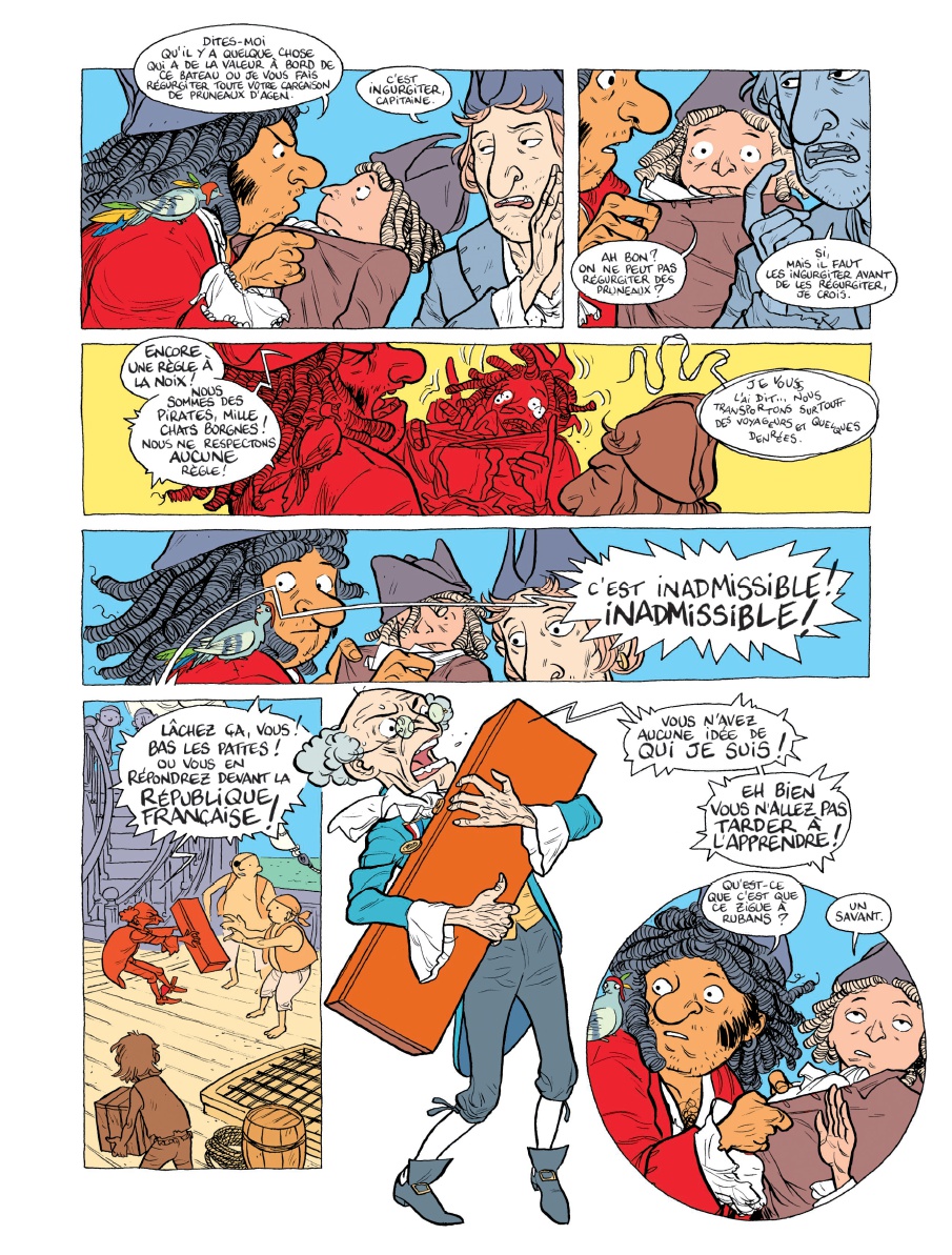 F évrier 1794, mer des Caraïbes. Envoyé par le gouvernement révolutionnaire pour rencontrer le président américain Thomas Jefferson, le savant Joseph Dombey est capturé à bord du bateau pirate Le Fieffé Coquin. Il transporte avec lui une mallette qui contient des instruments révolutionnaires : le mètre décimal, un cube pour mesurer le litre et un cylindre d'un kilogramme.