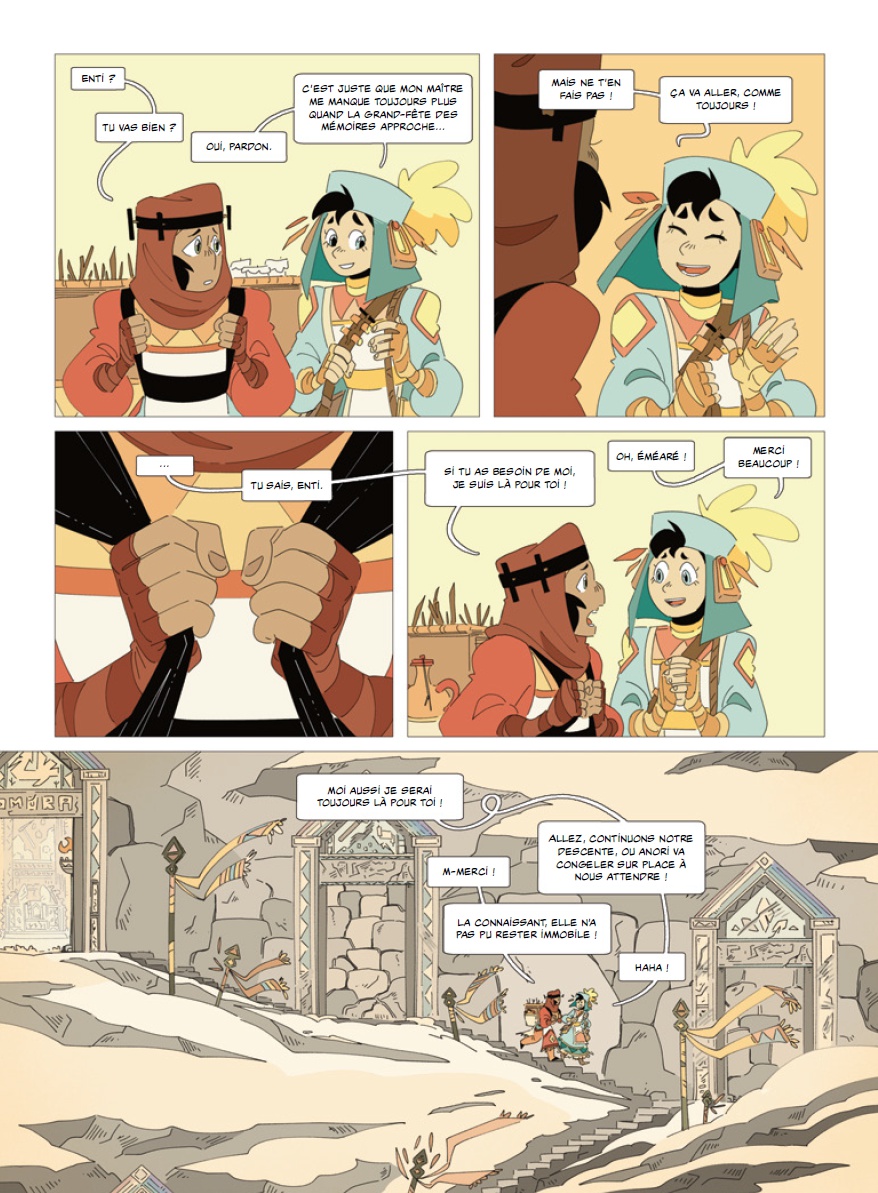 u village Au-creux-des-Monts, les passeuses et passeurs de mémoires content les histoires de celles et ceux qui naissent, vivent... puis dorment pour toujours. Grâce à leurs récits, tous les êtres aimés restent éternellement dans les souvenirs des vivants. Tous, sauf ceux que l'on condamne à l'oubli pour des raisons qui échappent à Enti et ses amis, et que l'on refuse de leur expliquer...