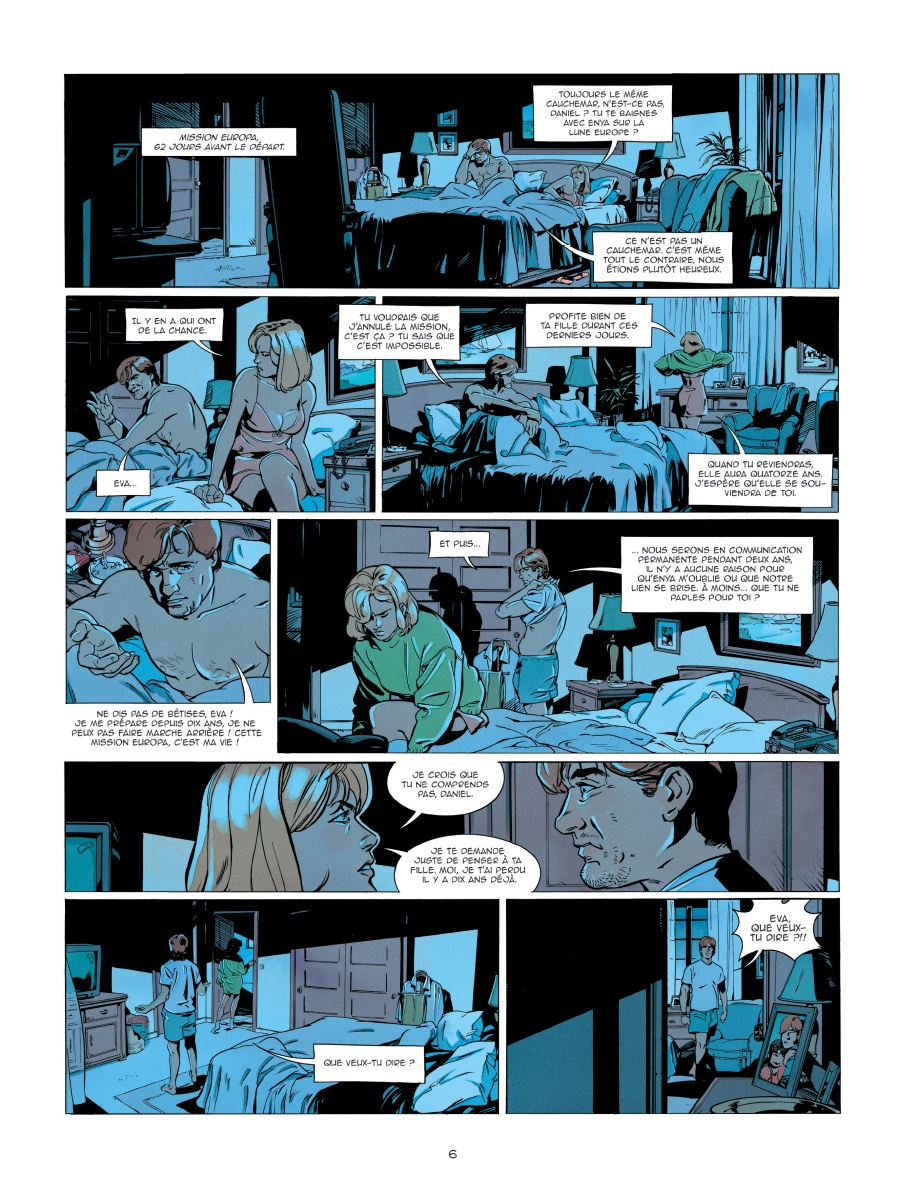 ette mission, c'est sa vie : dix années qu'il la prépare... Daniel Nikto et son équipe vont passer deux ans à explorer les sous-sols de la lune Europe et à organiser la colonisation prochaine du quatrième plus grand satellite de Jupiter. Pour Daniel, ce seront aussi deux années sans Eva, son épouse - bien que celle-ci l'ait manifestement déjà remplacé -, et surtout, sans sa fille Enya. Cette séparation a beau lui peser, impossible de ne pas partir : il a travaillé d'arrache-pied pour l'organisation de cette expédition, créant même un supercalculateur d'une puissance inégalée. Mais quand un neurologue annonce à Daniel qu'il a une tumeur au cerveau dont l'évolution est imprévisible, les responsables de la mission ne prennent aucun risque et décident de le remplacer...