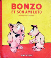 Bande d'origine anglaise adaptée au format ''comic strip'' par G.E. Studdy pour le compte du syndicat K.F.S. au début des années 1930. Elle fût publiée en France par le journal Fantasio puis dans Le Journal de Mickey. Hachette publia 8 volumes de Bonzo de1932 à 1939. Ce sont de grands albums souples de format 28.5x32cm.