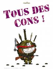 Votre patron, vos collègues de bureau, la famille, les voisins, les autres automobilistes, le commerçant d’à côté, le facteur, l’agent du guichet de la SNCF, le médecin, et tellement d’autres encore… Ils ont un point commun : à un moment ou à un autre, pour une raison ou pour une autre, ce sont TOUS DES CONS ! Cette BD est un bon coup de gueule, un défouloir irrésistiblement drôle qui pourfend la... Lire la suite