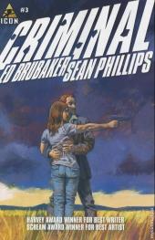 Criminal est une série "polar" écrite par Ed Brubaker et dessinée par Sean Phillips, publié à l'origine par Marvel comics. Criminal (2006) s'arrête au n°10 pour reprendre au n°1 de la série Criminal (2008)
