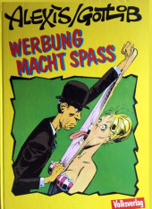 La majorité des planches de Dans la joie jusqu'au cou reprennent les six histoires de La publicité "dans la joie", parodie de télé-achat vendant des objets improbables. Les deux vendeurs, un homme à l'air austère et au sérieux inébranlable, et une jeune femme exubérante souvent légèrement vêtue, vantent aux lecteurs les vertus d'une colle surpuissante (Limpidol), des mets pharmaceutiques pour la digestion... Lire la suite