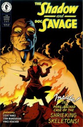 This essentially comes across as a Doc Savage adventure guest starring The Shadow. Which is perhaps a logical approach given the tendency is often to depict The Shadow as a mysterious enigma, meaning it's easier to use Savage as a conventional protagonist. And the plot nicely evokes a classic Doc Savage adventure, with Doc and his two most popular aides (Ham and Monk -- the rest of the team mentioned... Lire la suite