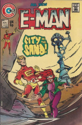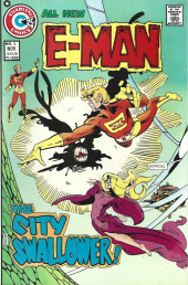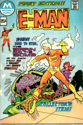 Origin and first appearance of E-Man (Alec Tronn, an energy being from space), his girlfriend Nova Kane and The Brain from Alpha Centauri; E-man is a pure energy form curiously roaming the universe when he stumbles on a ship controlled by a large brain; the Brain releases a gas bomb that will destroy planet earth but E-man thwarts the attempt accidentally while transforming himself into a robot slave.