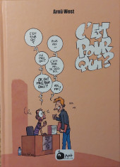 Arnü West croque sa vie d’auteur de BD dans C’est pour qui ?. Cet album de gags est un recueil mettant en scène des séances de dédicaces fantaisistes, le quotidien d’un auteur de BD et l’animation régulière d’une série humoristique dans le magazine L’Immanquable (l’« Immanquablecteur »). Cette BD familiale, riche en autodérision et ironie, livre des petites tranches de vie autour d’un métier pas forcément... Lire la suite