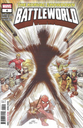 THE BATTLEWORLD FROM SECRET WARS RETURNS! "SLAY YOUR ENEMIES, PROVE YOUR WORTH AND ALL YOU DESIRE SHALL BE YOURS IN THE WORLD TO COME!" Heroes from across the Multiverse are thrown together on a patchwork world to engage in their own Secret Wars for the survival of their timelines! Who or what has created this Battleworld, and for what nefarious purpose? Enter Maestro. Is he friend, or foe?